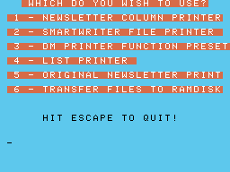 Fileprinter v1.2 (Disk) - Allows you to print your SmartWRITER documents in various formats on a dot matrix printer. |