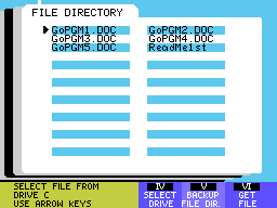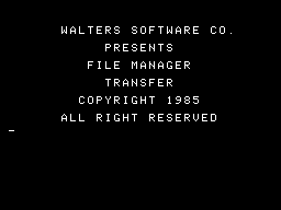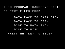 File Manager Transfer (Disk/DDP) - Program that allows you to transfer files and/or BASIC between disks or DDPs. |