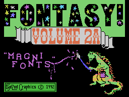 Fontasy Vol. 2A (Disk) - Program for viewing sprite files and experimenting with size & color. No "print" or "save" features. |