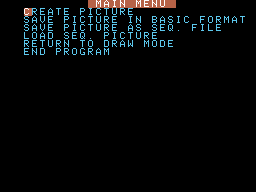 Graphics Writer v1.0 (Disk) - Program allows you to create picture files and save them in BASIC format. |