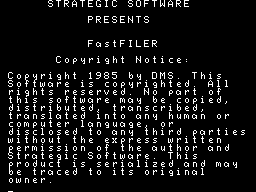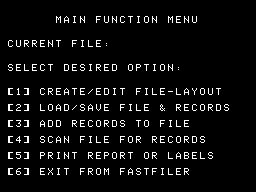 FastFILER (Disk) - Filing database program to keep records. Prints reports and labels. |